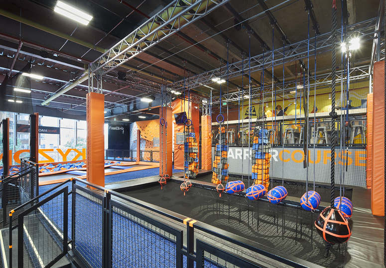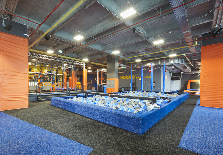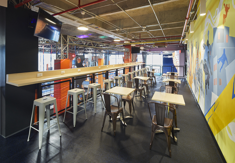 En nuestro proyecto para Skyzone desarrollamos mobiliario para alto tráfico, máximo confort y mucha innovación. ¿El resultado? Un espacio único para divertirse.