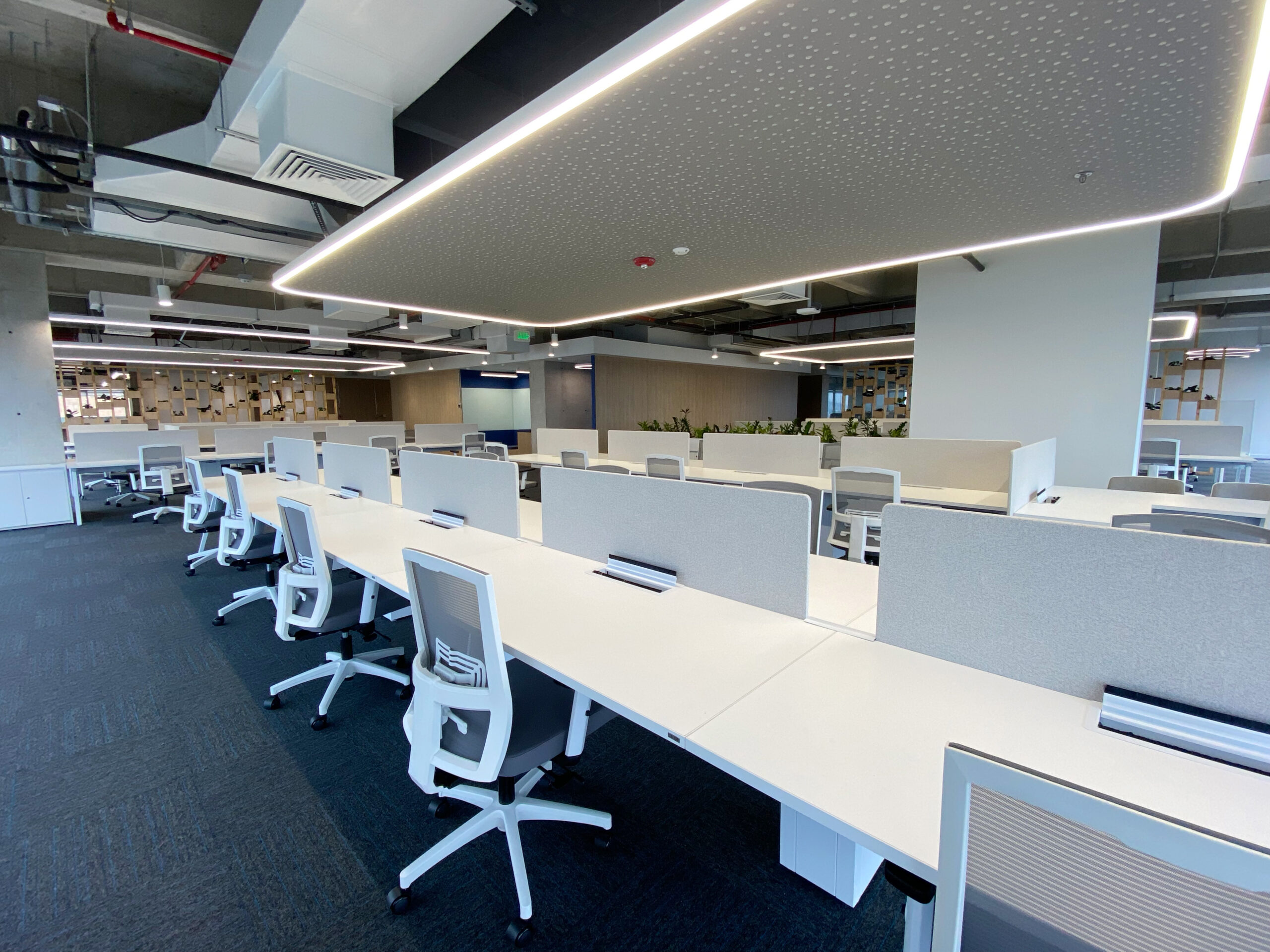 Intervención de 17.194 m², diseñados para 1.426 puestos de trabajo. El espacio incluye salas de reuniones, estaciones de café, puntos de impresión, áreas colaborativas y otros entornos funcionales para fomentar la productividad y el trabajo en equipo.